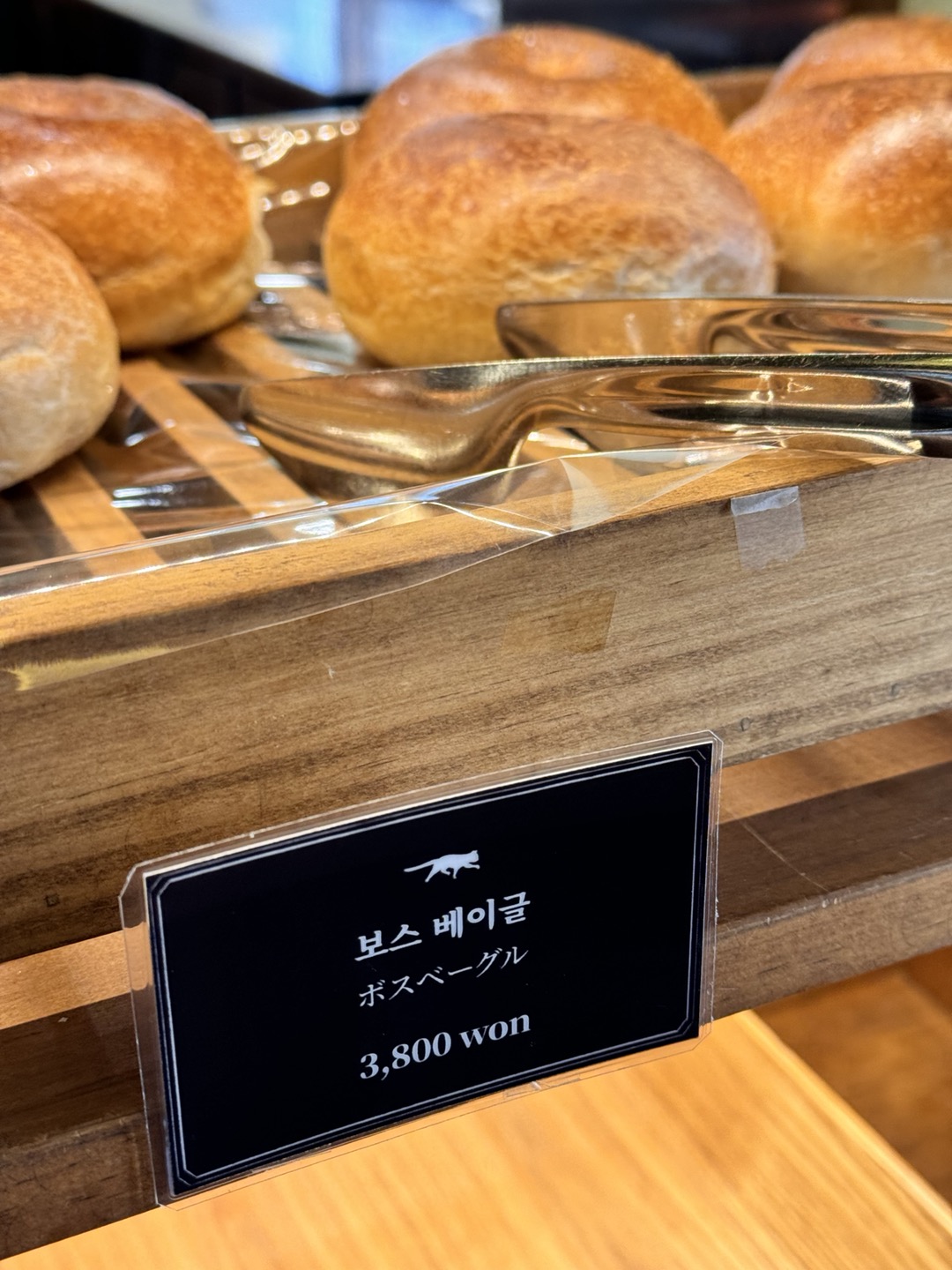 '보스 베이글 웍스’에 들어서면, 목재로 꾸며진 인테리어가 눈길을 사로잡아요.